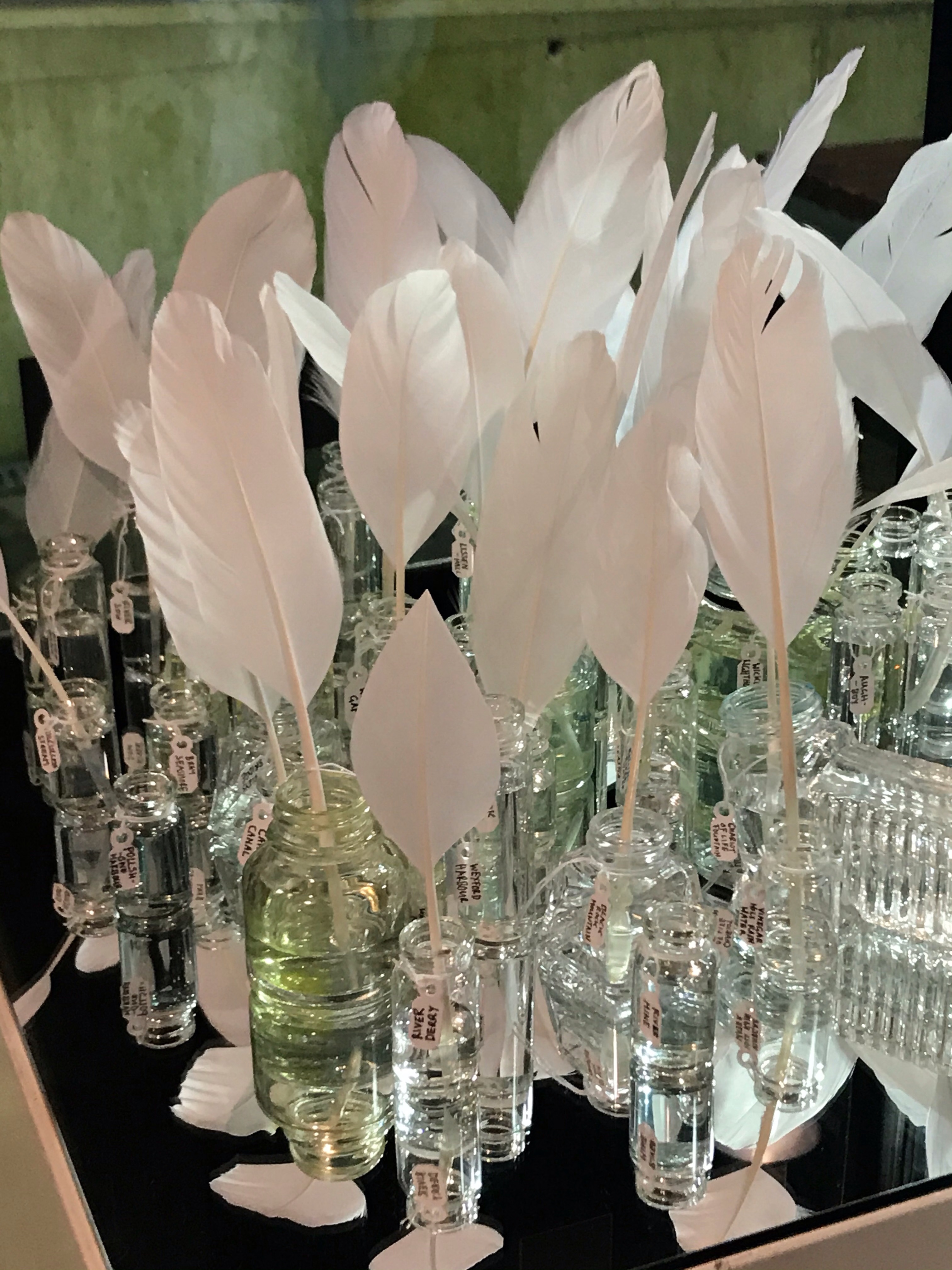 It’s a small visually pretty exhibition. The main work floats from the ceiling, it’s quiet lovely even poetic and romantic. Maybe I just think that because the device used is a dove!