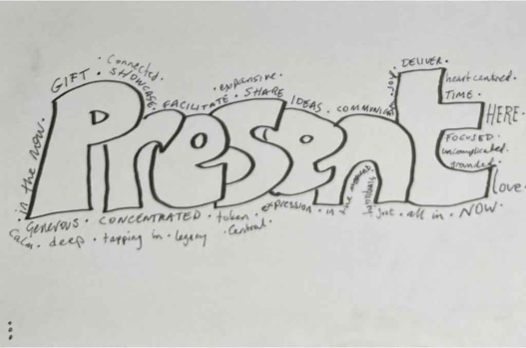 The word present is also about these words for me ~ show up, deliver, share, calm, concentrated, just, grounded, showcase, facilitate, simplicity, open, collaborate, nurture, boundaries…