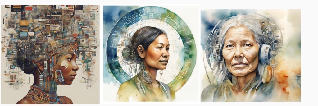 I had to work hard to get the images to open out to different diversities and geographies. I also had to really work on the maturity scale of women. The Ai by default served me men and then when prompted for women, white women.