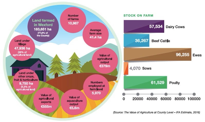 - 2.4 billion in Revenue thru the Wexford agricultural – THIS IS NOT CORRECT. The Wexford County Development Plan 2022 – 2028 states that Wexford’s value of agricultural output is €398m not €2.4b.
