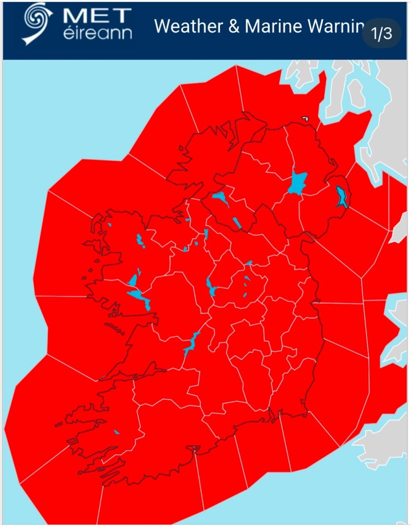 The impact of human made climate change was large in Ireland this week with one of the biggest storms ever, storm Éowyn. On bluesky, people joking about the wind finally uniting Ireland. The graphic of the whole country in red is a pretty significant one as normally Northern Ireland is omitted and in the UK Ireland is omitted. The wind does not see human boundaries.