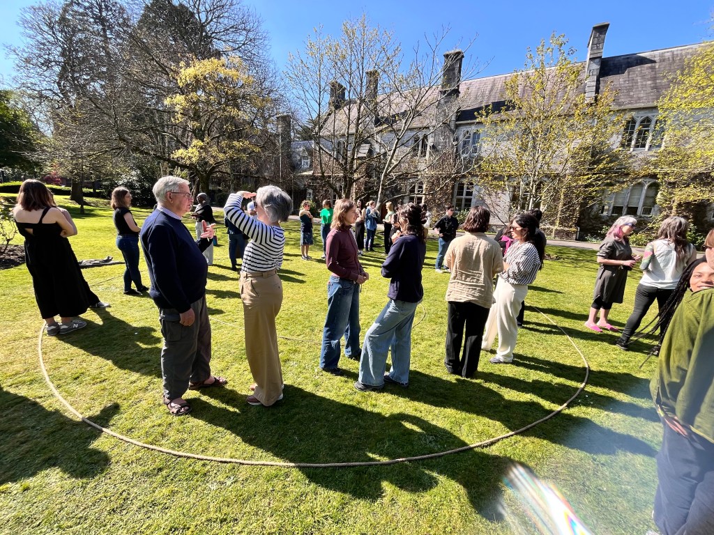 I love working outside under trees, on grass in the sun. It’s my preferred environment for that workshop. The group was pretty excited we were doing the workshop outdoors too. I’ve been working with this embodied introduction of doughnut economics for over 4 years now. It’s one of my favourite ways to share and invite people to experience new economic thinking.