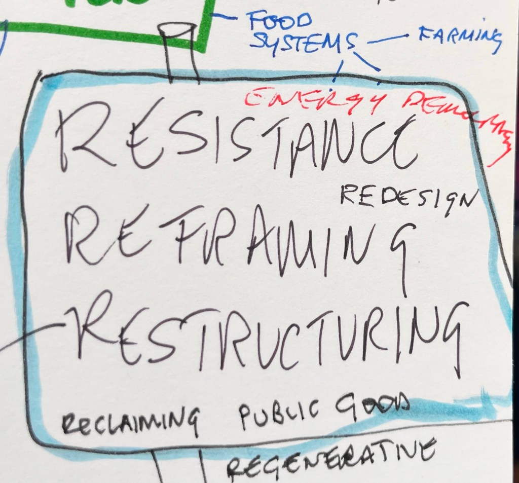The session really spoke to a lot of where my attention is – living democracy, fairness and justice, policy, business and communities, femnist global approach, who is climate action for? networks and collective action, systems change not climate change.