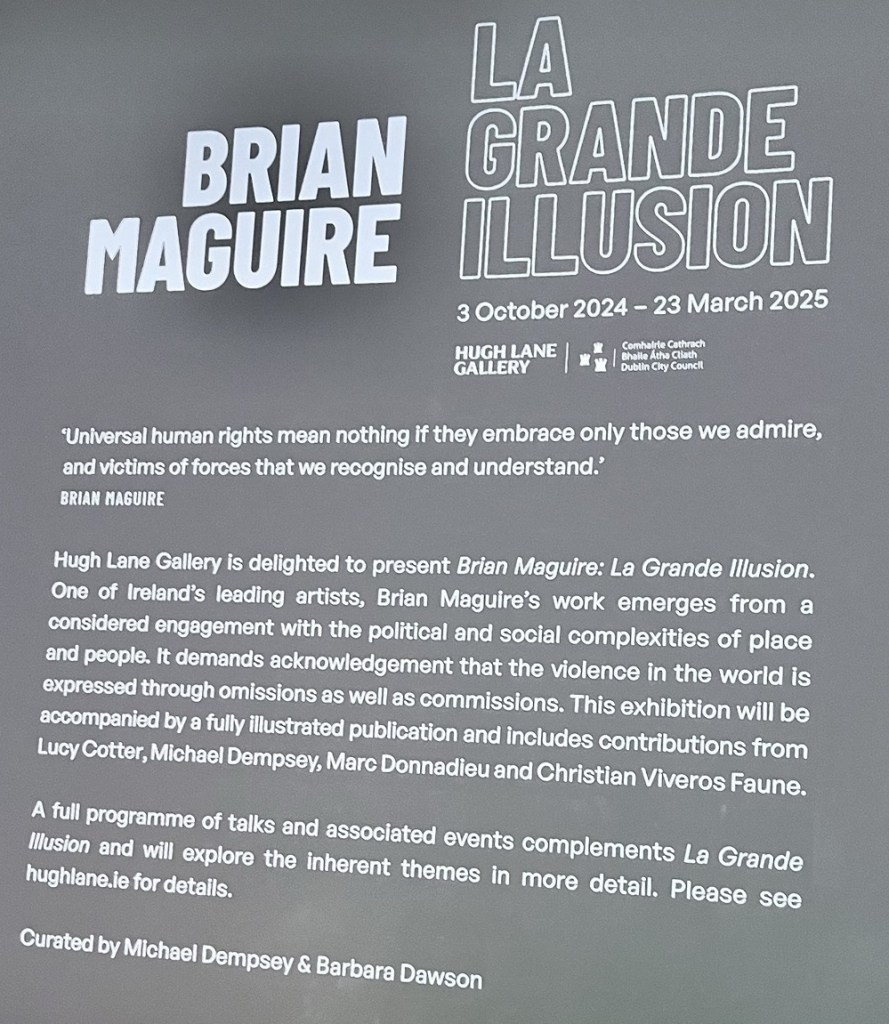 Maguire’s exhibition in the Hugh Lane recommended to me by my good friend Clare Tait, a former chocolatier of Chocolate Claire had recommended I go. It was a significant exhibition to go to just before I took to the streets marching for human rights of Palestinians in occupied territories.