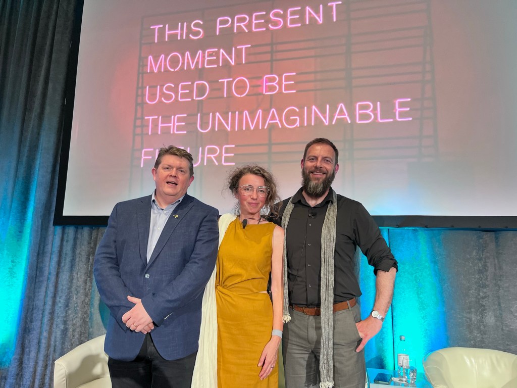 Dermot’s opening speech had some really interesting images in them. His call to action “Lets RE-ENCHANTMENT the Future. Fascinating to see this narrative playing out in a business context. He anchored some of his narrative in the fact his Dad formed the first credit union in the town he grew up. Credit Unions are a phenomenal story of community organising, local pooling of resources and financial management.