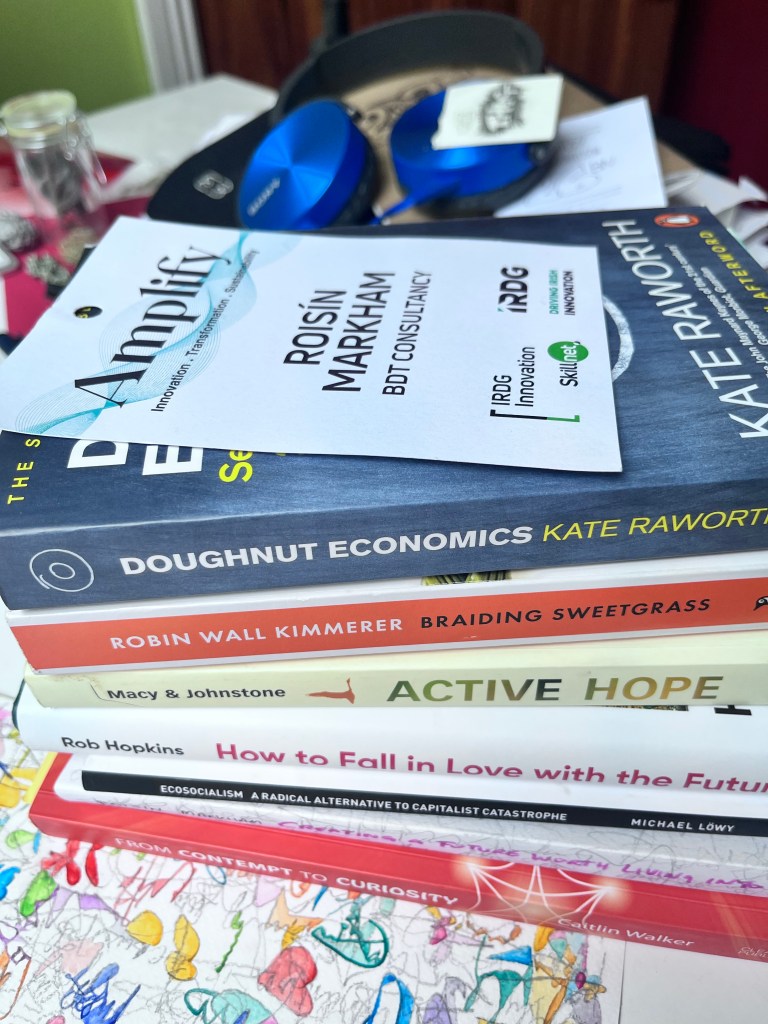 My conversations were about radical mutual care, time traveling, creative enquiry, SEAI RDD call, being in closer orbit, courage to be the arrow, current system, language words given to expression and articulation of femnist climate futures, social leasing, practices of thinking like a 21st century economist. The why we need this now conversation and chapter in my new book – how to save €26BN.