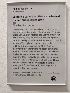 I gravitated towards this exceptional portrait of Catherine Corless whose relentless pursuit of the truth uncovered the awfulness about the Tuam Mother and Baby Home. Instantly recognisable she’s been on my mind since they started the excavation work. The Irish people owe her a huge debt.