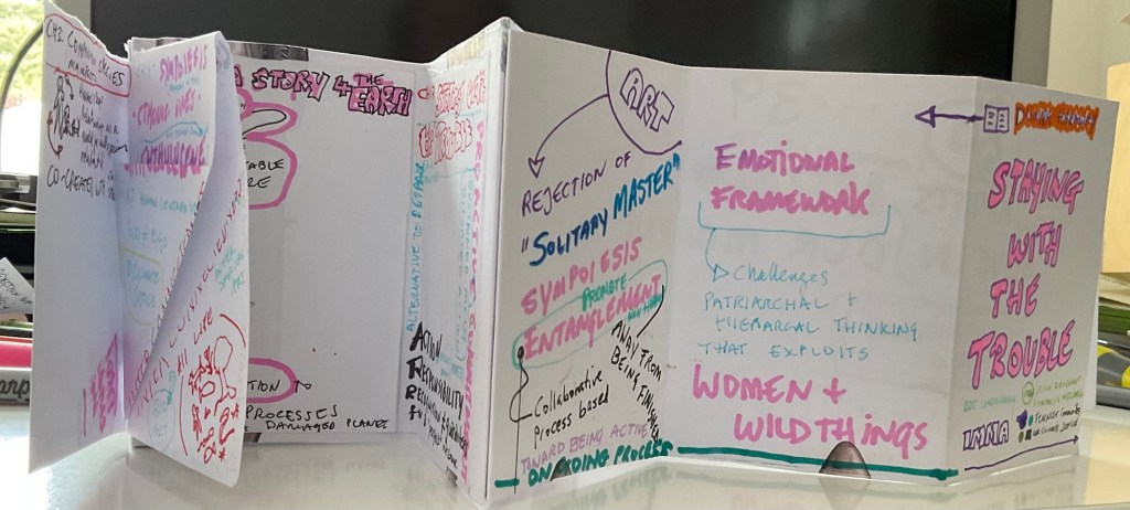 Over the last few weeks I have been doing a deep dive on Haraway’s work, a learning and thinking board has 32 notes of varying complexity. I’ve started threading and looking at shades of difference and sameness across writers, thinkers and storytellers whose work has been meaningful. Le Guin, Joanna Macy, Vanessa Machado de Oliveira, Dougald Hine. There are other inputs I am navigating and making sense of, formulating for sharing forward.