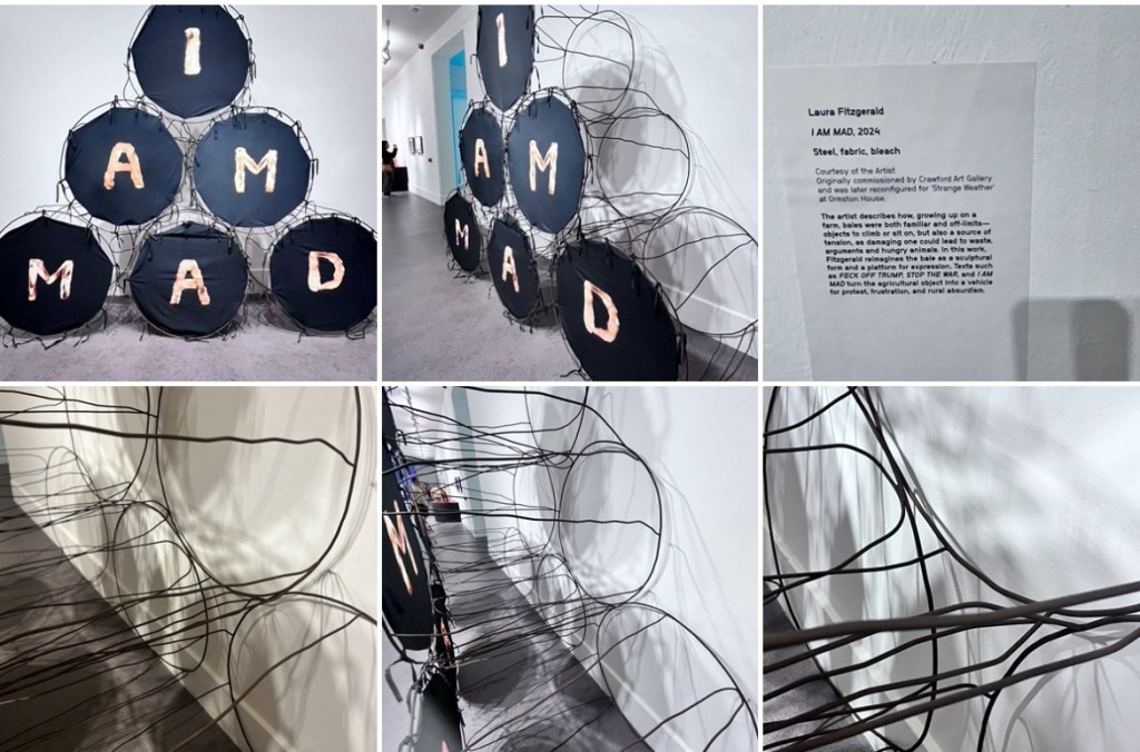 Laura Fitzgerald, I AM MAD, 2024 about hay bales is another favourite. Not just in the way she has re-imagined the bales but for me the shadow play behind the work also captivated me. I wonder how many noticed?