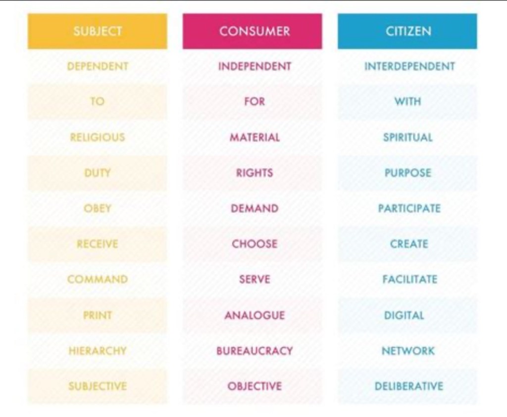 Jon Alexander’s talk was about his book Citizens and his framing of the three stories of our time. I’m interested in his work as he speaks about how to save democracy and giving people agency.