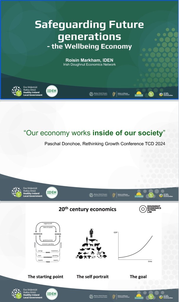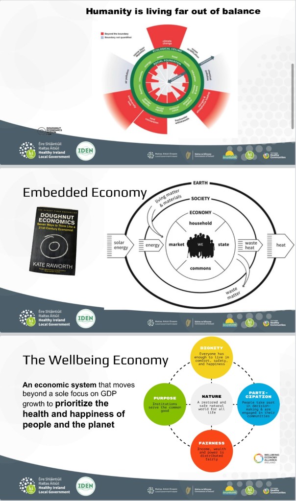 Perhaps people don’t expect someone like me to stand on a stage and speak passionately about our land, its values, our society, our economy and care at the core. At the drop of a hat I’ll talk to anyone about about doughnut economics and new economic thinking. I was delighted to be asked by the team in Health Ireland to speak about the wellbeing economy and community wealth building. I spoke more about new economic thinking, care at the core, data and a little about community wealth building. In hindsight I should have shared BOHs as case study.