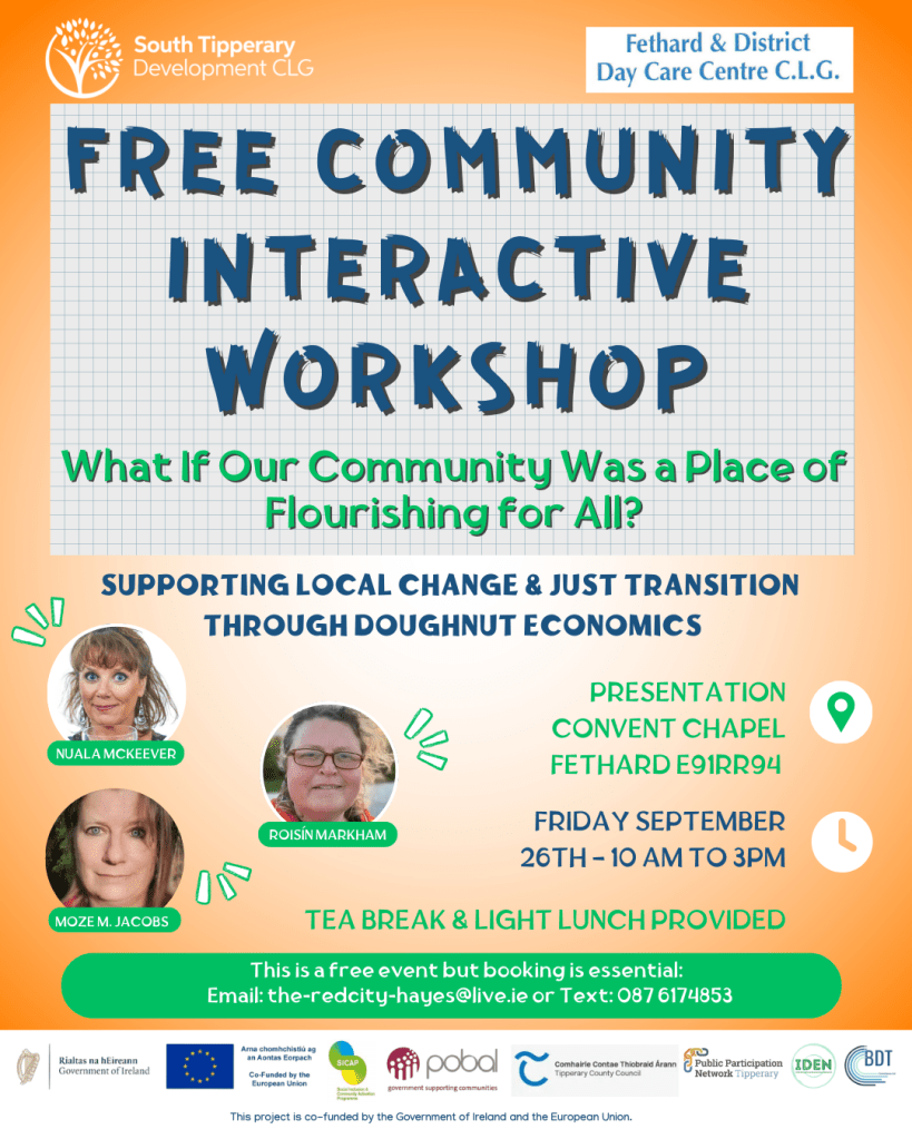 Nuala McKeever is doing her one woman play the night before and I’m looking forward to seeing that. On the Friday we’ll be offering a step into the doughnut, an introduction to DE, a look at the Irish context and West Cork Donut Economy as the case study. Moze will be co-facilitating the community let’s get started event in the early afternoon. I’m looking forward to it.if you know anyone in that neck of the woods please share it with them.