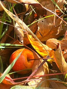 The winds arriving have shook most of the leaves from the local trees, the earth in our pocket forest is covered in golden browns and tiny crab apples.