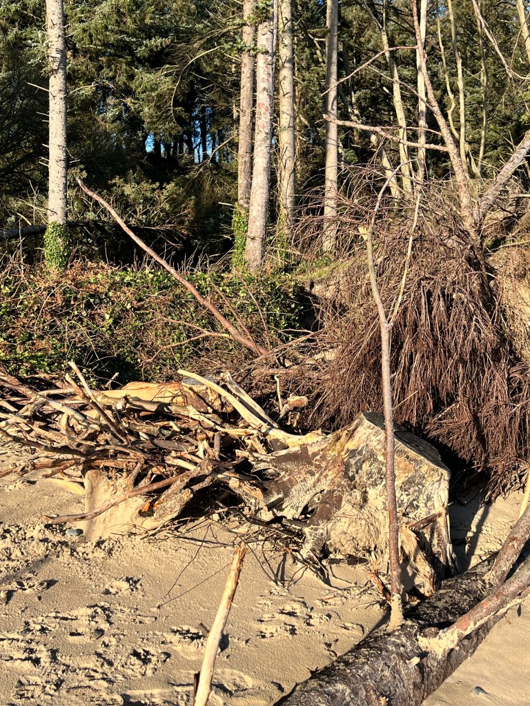 Courtown Heritage Forest continues to be lost a metre at a time to every storm. Rock armoury has not had the intended consequences. After the last storm the river has routed itself back to connect with the sea impacting rock armour and casting the boulders out possibly making it dangerous. Although the current is strong and I’d be surprised if anybody might get into the water there. I’d say it will be better for the health of the river and that part of the woods.