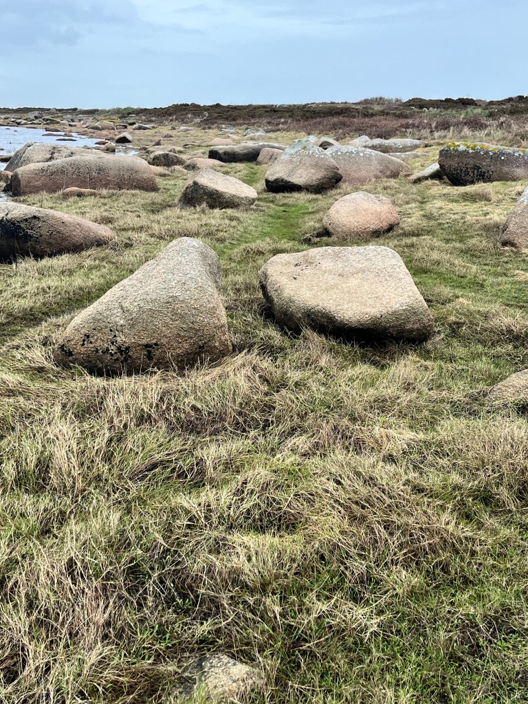 I am fascinated by how the rocks appear scattered like they have just rolled off a hill to the lake. I want to know more about these rocks.